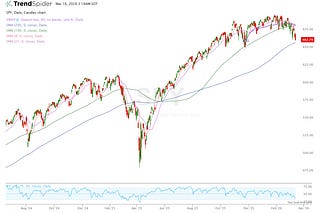 The SPY is still holding on as I write this, but the QQQ still looks pretty weak below the 100, 21, and 8 MA’s.