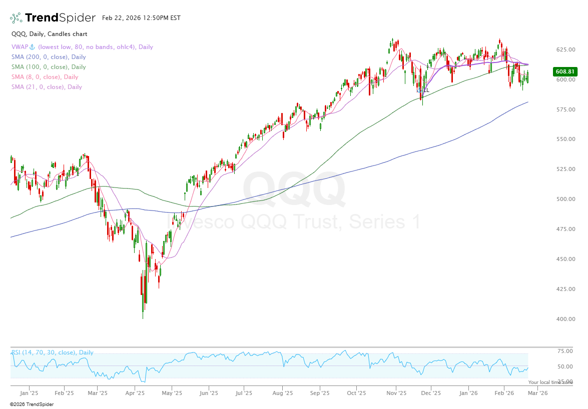 I’m nowhere near the mindset of trimming more than I have already trimmed. I trimmed a good portion of stocks that were up +100-200% a couple weeks ago like SVM, ONDS, and ALB. I also reduced my exposure to stocks that fell below the 200 daily MA or broke key structure like CRDO, OSCR, and UPST. However, I’m also nowhere near the mindset of being very long here.