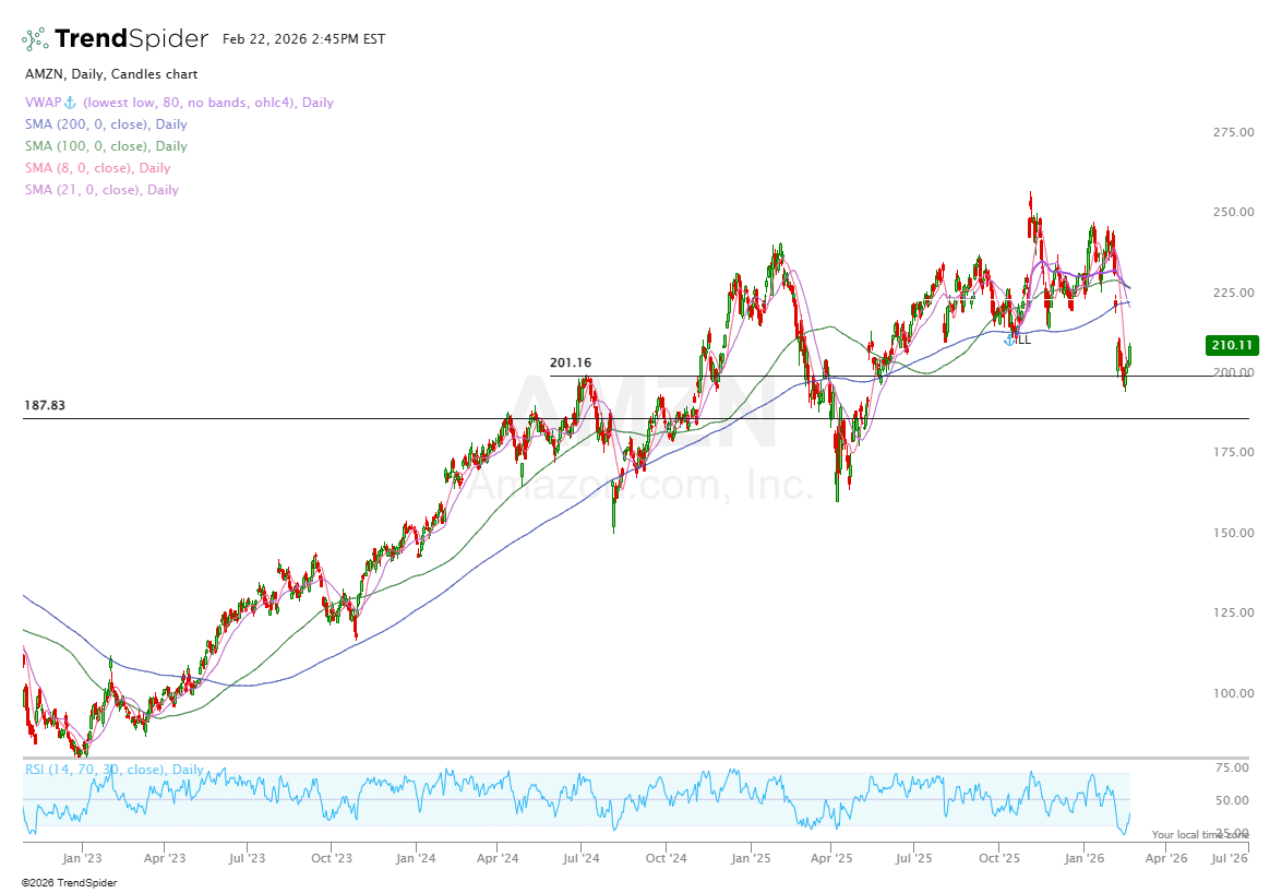 So far, technicals on AMZN are looking strong. We just bounced off the $200 support level and had a nice jump on Friday back up to $210. It’s now my 4th largest position having just overtaken PATH.