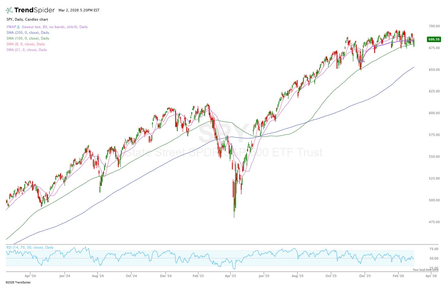 The SPY still remains above the 100 daily, though structurally you can’t deny that it looks a bit weaker. Many individual names are now below the 200 daily so caution here is still being exercised though I’m still taking advantage of opportunities.