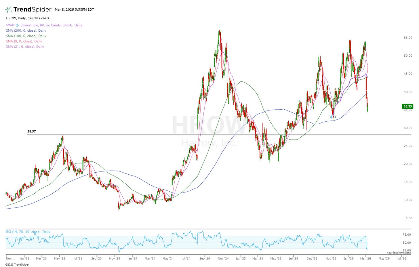 HROW is currently below the 200 daily but on the weekly still looks absolutely fine right at the 100MA.