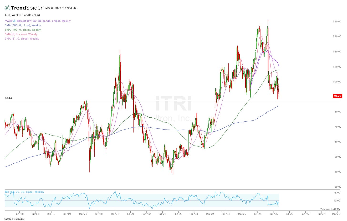 And it trades at just 15x NTM PEwith a historic average between 2021 and 2023 of much higher. Technically, it’s also sitting at a really nice weekly zone as well.