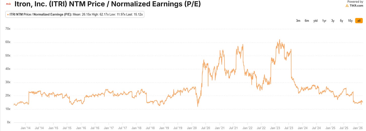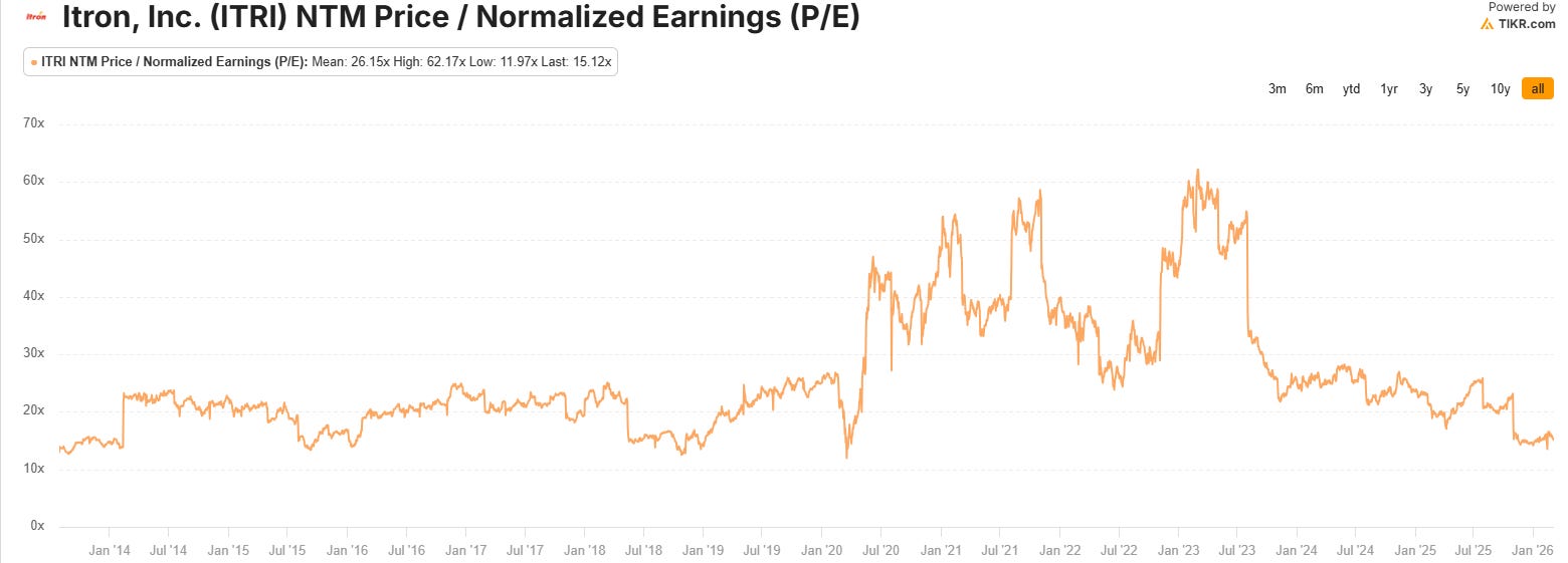 Here’s the NTM PE for ITRI over the last 12 years from Tikr.