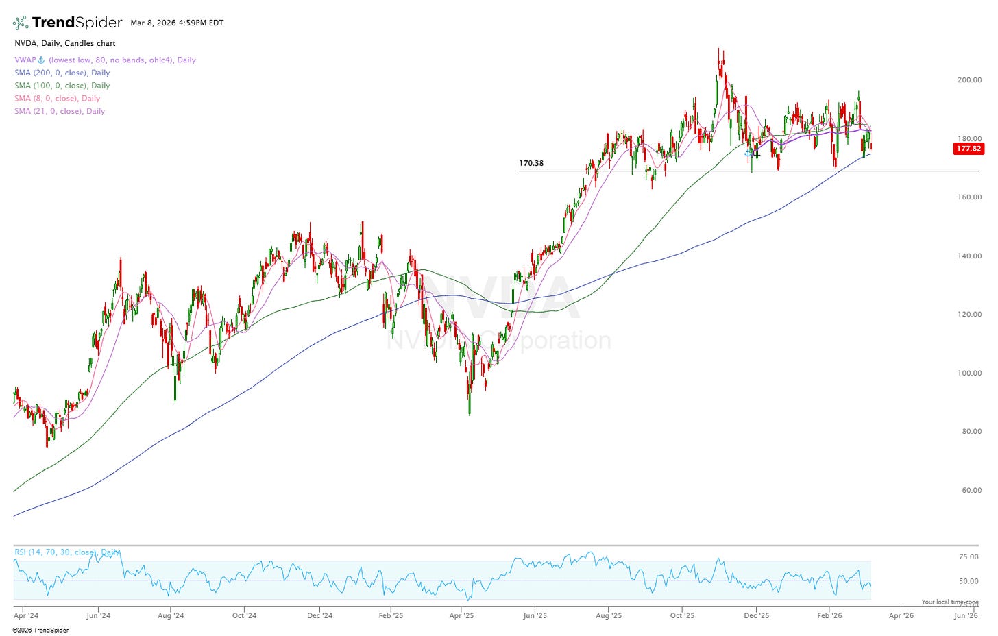 As long as NVDA stays above this $170 level marked on the chart above, I’ll be more than happy to buy in more.