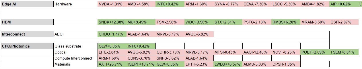 I created this back in December 2025 before LITE and AAOI had their massive runs. It gives you a list of all the stocks within the theme measured by revenue and growth rates relative to multiples and also combines that with where the stock is trading technically vs key MA’s.