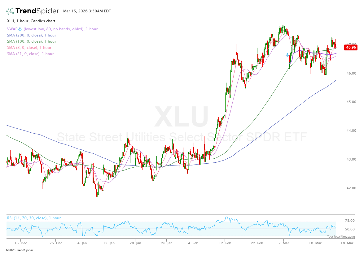 I never like to “re-run” ideas in consecutive weeks, but doing so also shows my conviction in the theme. I’ve now chosen XLU (S&P 500 Utilities Sector ETF) as my more defensive play for 3 out of the last 4 weeks.