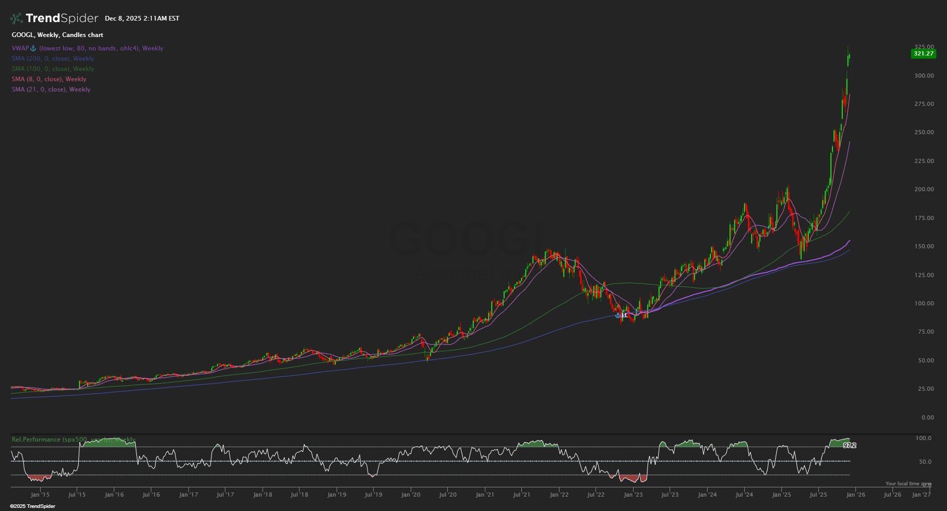 If you look at Big Tech again like GOOGL, momentum is slowing. Here’s GOOGL on the weekly. Last week looked more like a consolidation rather than strong momentum.