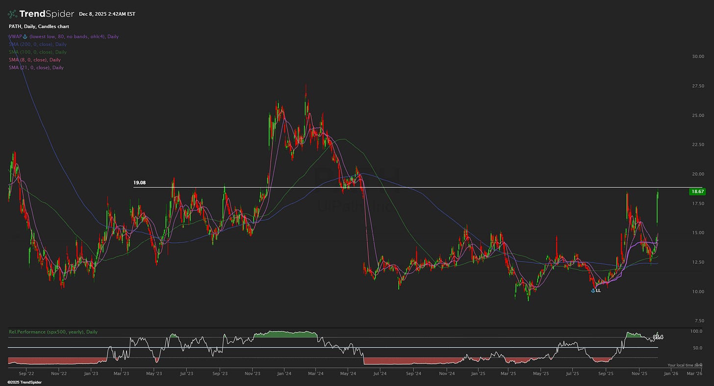 Overall, I think December is going to be one of those months where I play things a bit more careful. I won’t be that aggressive with entries and I’ll make sure to wait until there’s levels I really want. The only one I haven’t done this with has been PATH but I wanted to make sure I built a nice position before earnings which ended up popping the stock up +25%.