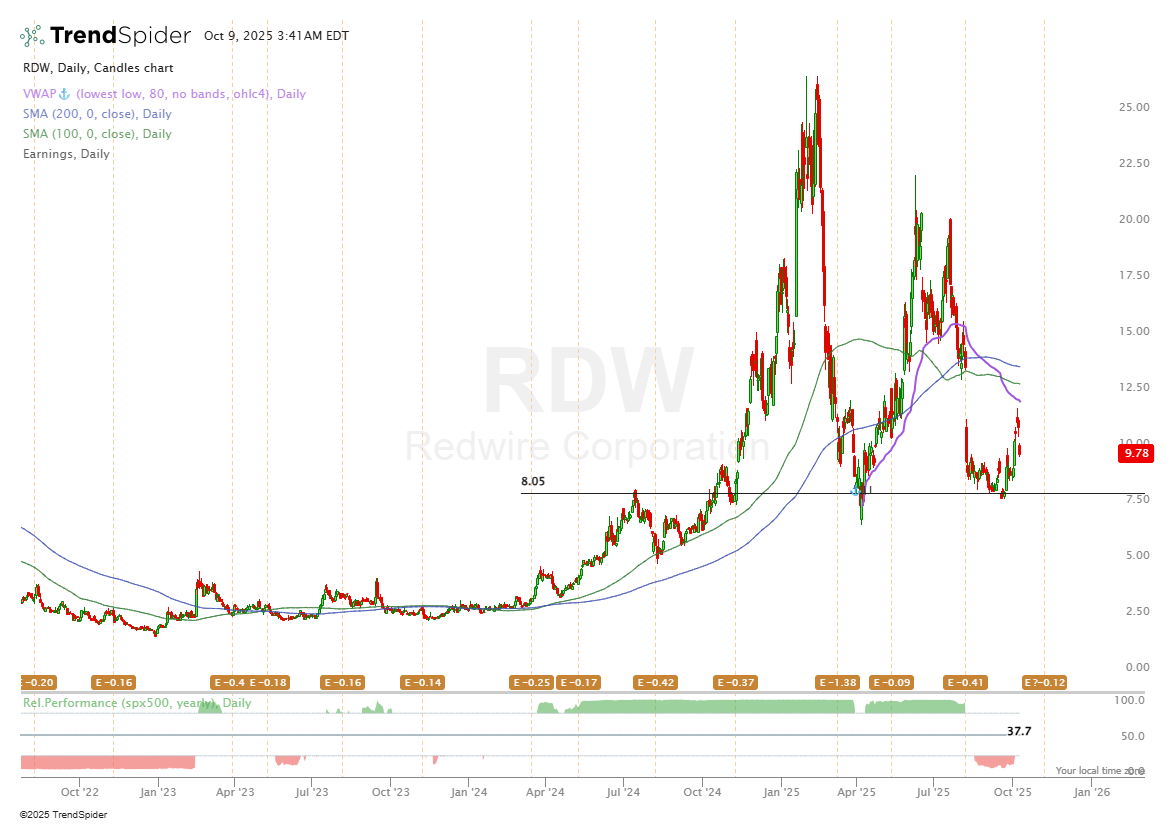 RDW are a company in the space niche building products such as sensors, RF systems, in-space propulsion systems, solar arrays and much more. During this bull run we’ve seen a lot of capital flooded into the space niche, with many companies that have moved +200% (RKLB, PL) and some laggards (RDW). Ultimately, the question here comes down to whether these laggards have lagged for a particular reason that is justified.