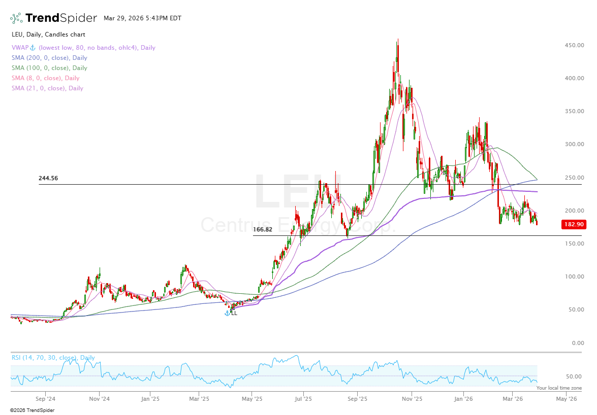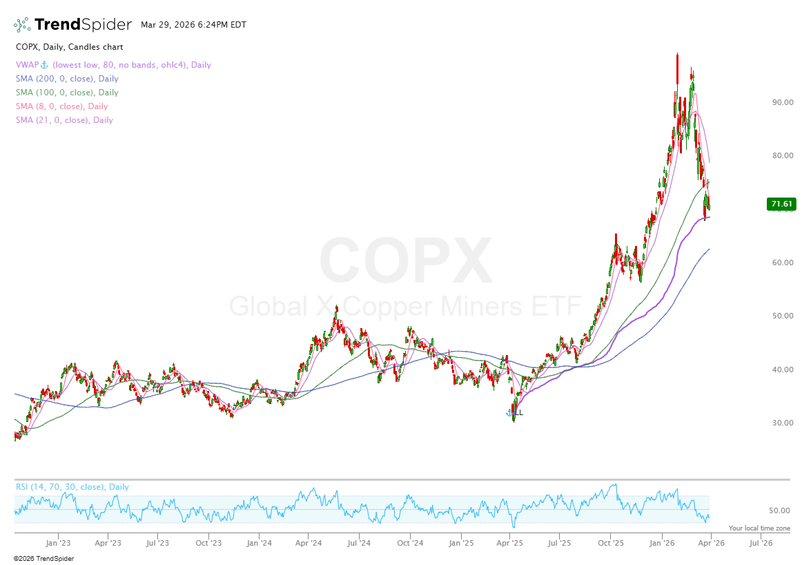 Here’s what I wrote last week about COPX, TMQ, LEU, SANM, and OUST. All held up very nicely over the week (aside from OUST).