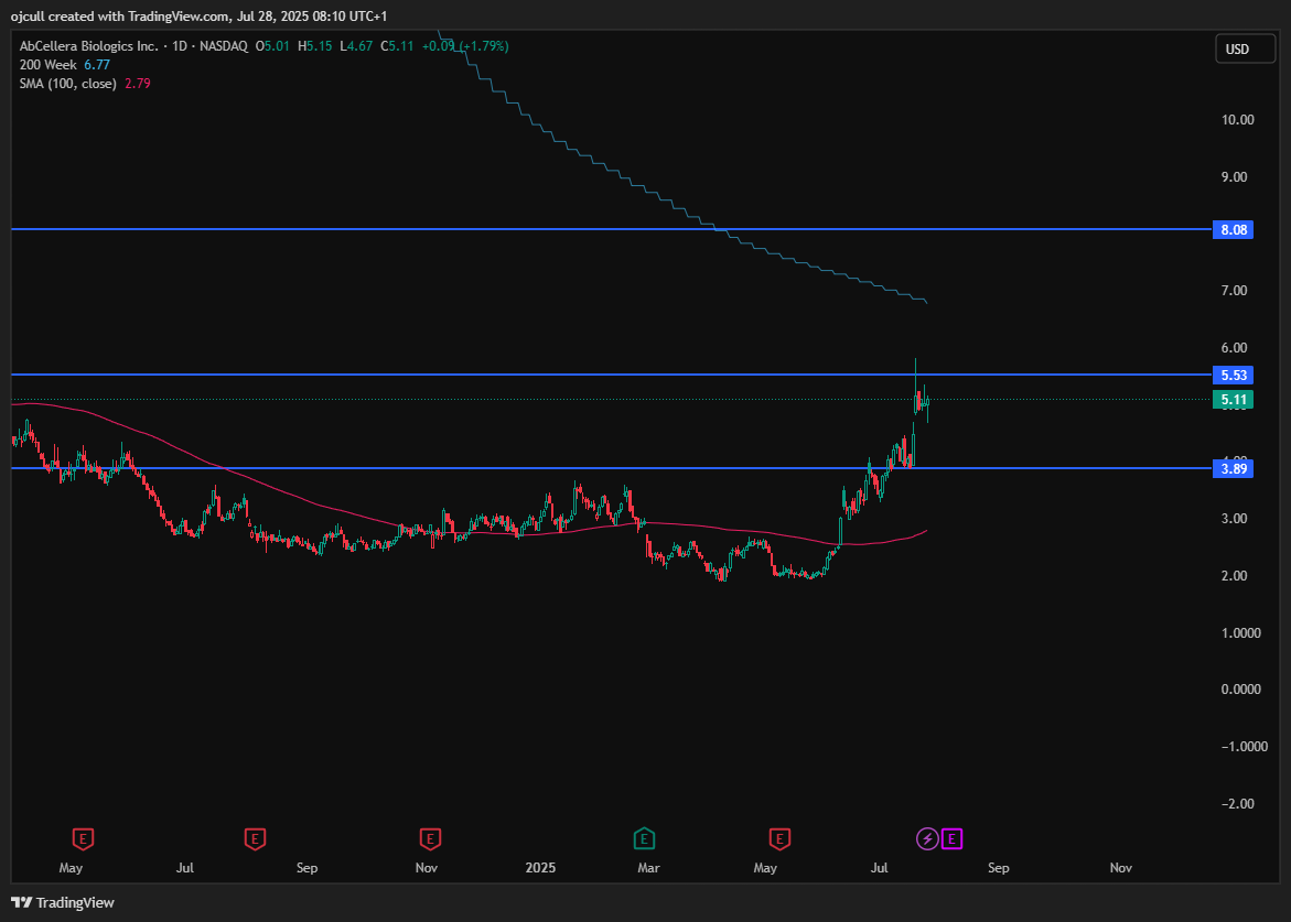 In an ideal world, I’d love ABCL to come back to this $4 level after its recent breakout and confirm support there before its next leg up. Realistically, there’s no knowing whether or not this will happen anytime soon and if ABCL is a “moonshot” stock like it is for me, the difference between $5 and $4 for a first buy shouldn’t be too much of a material difference. I think I’ll be buying ABCL sometime soon but just watching price action quite closely for the time being. I’ll update paid subs as and when necessary.