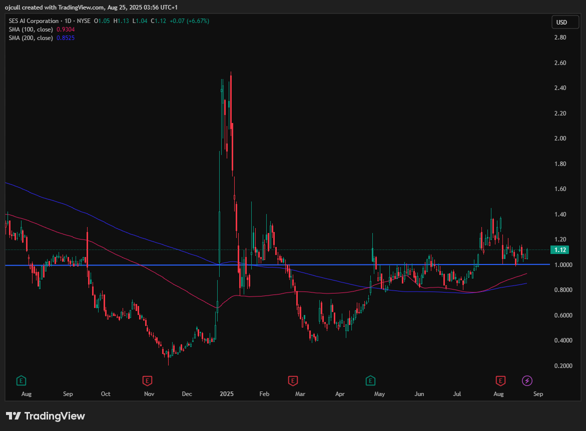 SES AI is a next-gen battery company developing lithium metal batteries. Current revenue guide for FY25 is $15-25 million and EPS estimates are -$0.15 with Q2 earnings being reported on 4th August.