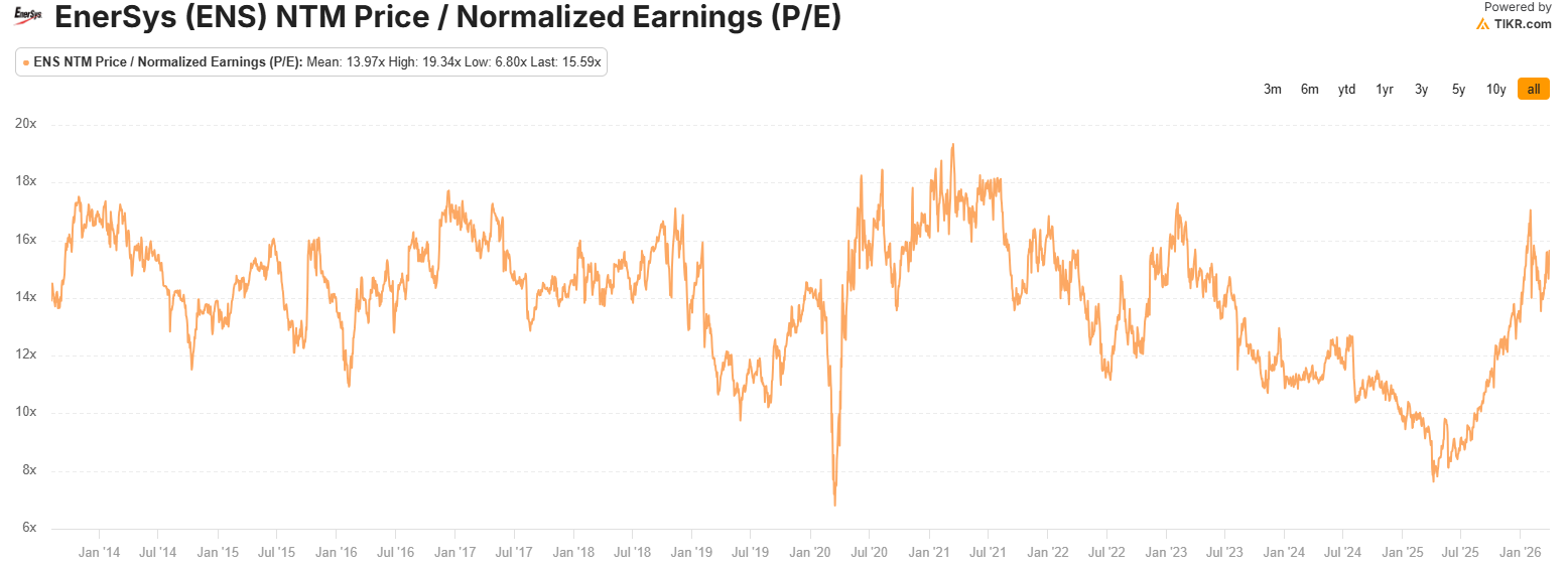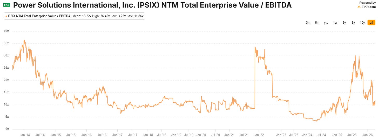Despite the run up, ENS only trades at 15x NTM PE today. Growth is much slower than PSIX, but there’s a lot less balance sheet risk and typical small cap risk for ENS.