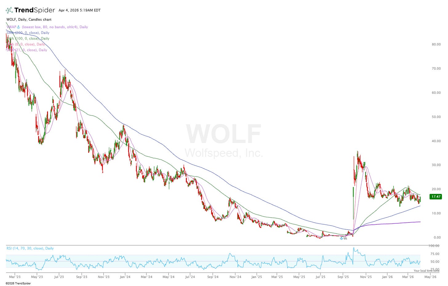 WOLF just issued $379M in convertible notes with is dilutive at $20.14 per share meaning if WOLF trades above $20.14 at any point before 2031, noteholders can convert into equity. The other side to this is that proceeds are being used to redeem existing senior notes…making this more of a debt refinancing rather than a cash raise for continued operations.