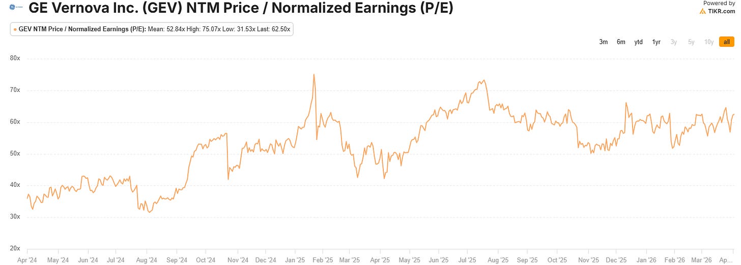 Management guidance implies $5-6B in FCF in FY27-FY28 which means GEV is currently trading ~48x 2027 FCF which is a premium multiple, but it’s also a multiple that can be justified when FCF is growing at +40%. I can’t see GEV earning much more than 50x FCF multiple even if the electrification backlog doubles, and the wind segment stops becoming a drag. I wouldn’t be bearish on GEV at all, but I think at current levels you’re not aiming for more than 20-30% upside from here in the near term.