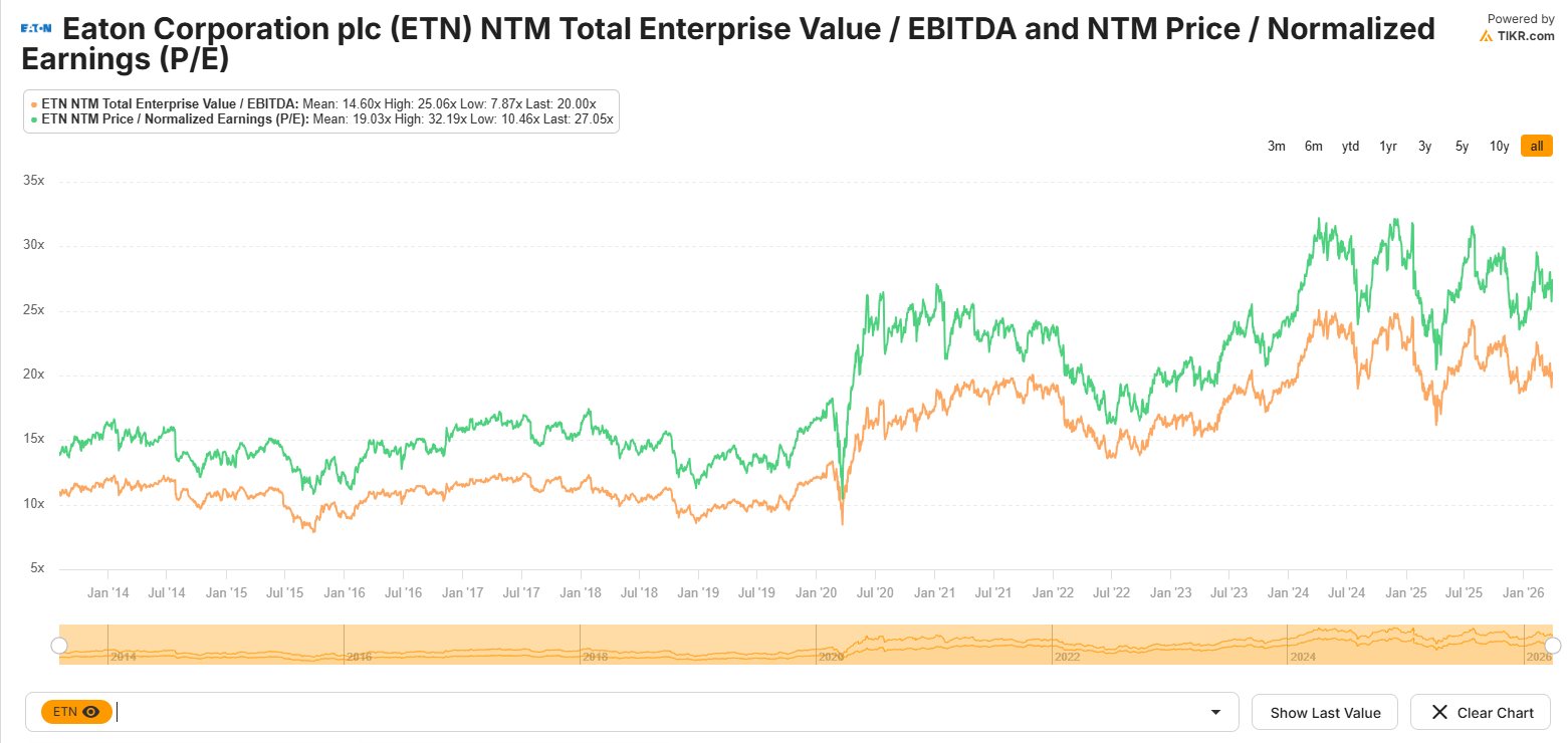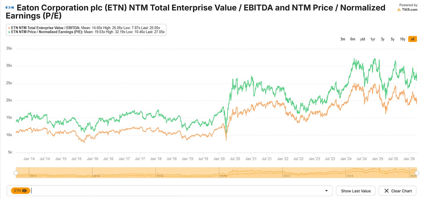 ETN is a diversified power management company that sits right in the middle of the US grid modernisation theme. It designs and manufactures the full stack of electrical infrastructure - transformers, switchgear, circuit breakers, power distribution units, busway systems etc - across every voltage class.