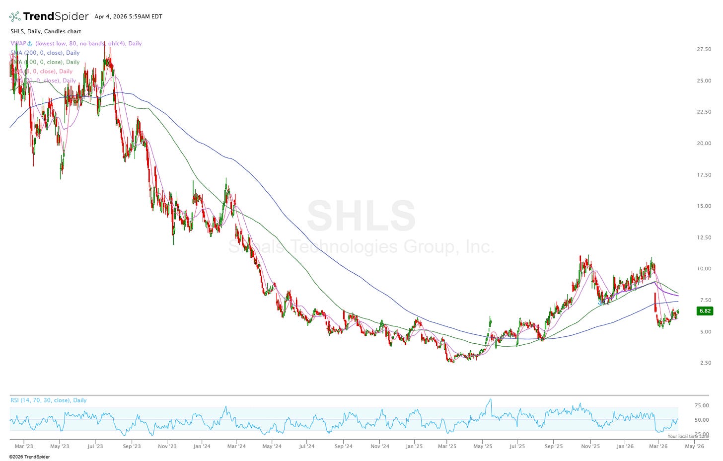 FY26 estimates for revenue are $587M (24% increase on FY25) with EBITDA at $117M (18% increase on FY25), and net income at $70M (16% increase on FY25). This means SHLS trades at ~2.2x NTM sales (for 24% growth), and 11.2x NTM EBITDA for 18% growth which is quite attractive given the monopoly position in the market.