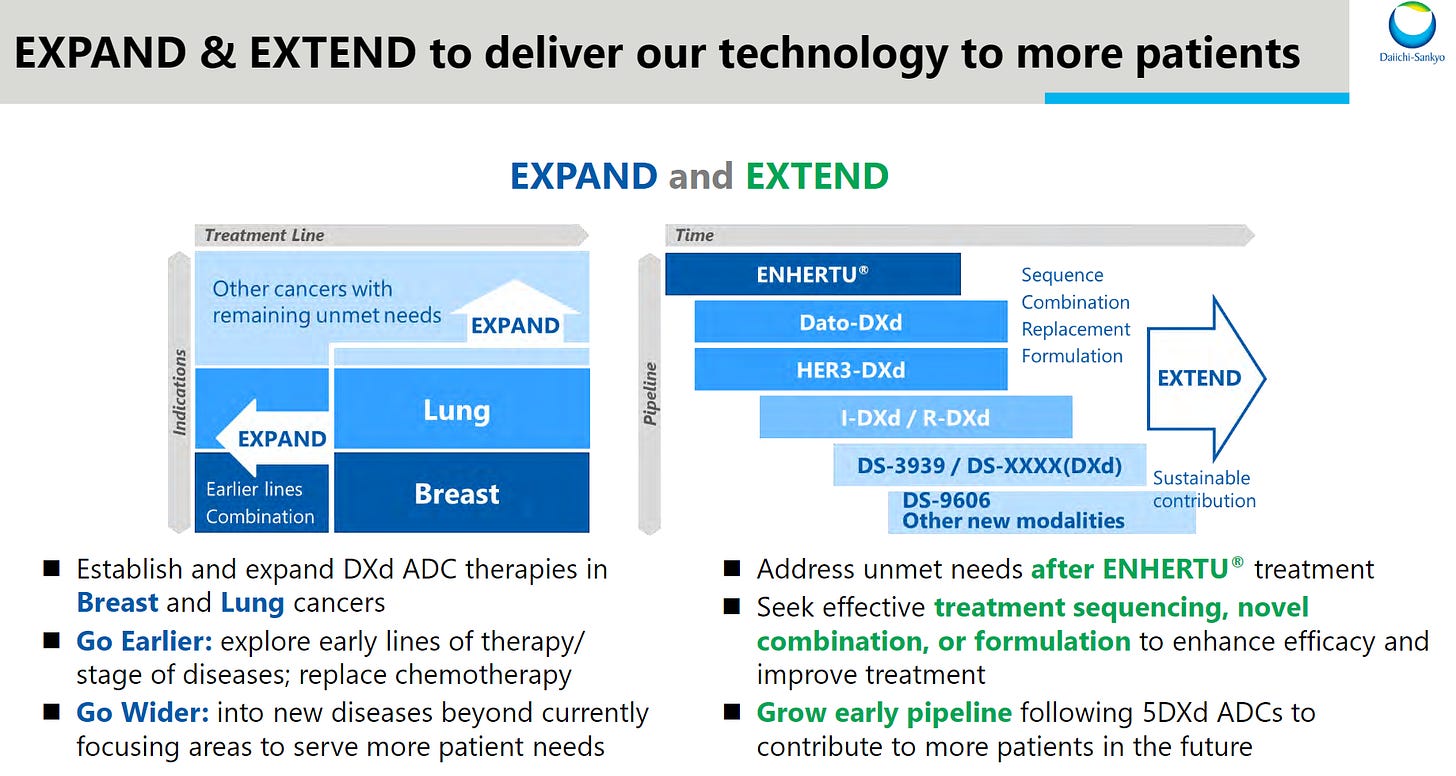 Daiichi Sankyo are focused on ADCs which is an innovative class of cancer therapies that combine the specificity of an antibody with the potency of cyotoxic drugs (chemotherapy).