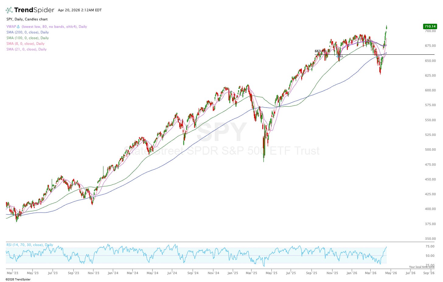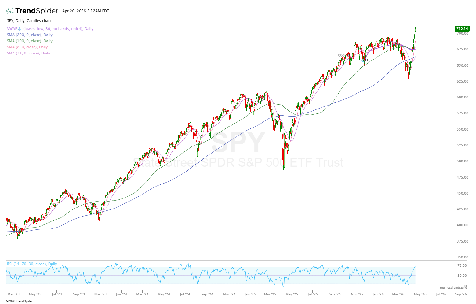 This is a very challenging, but great time for stock pickers. I think it’s very important here, as always at new highs, to act with a bit of caution. Futures are currently down which is of course more than welcomed and expected after the recent surge. Whether this is a technical pullback (good), or the start of a more long-term structural pullback because of re-escalation again (bad), I’m not sure.