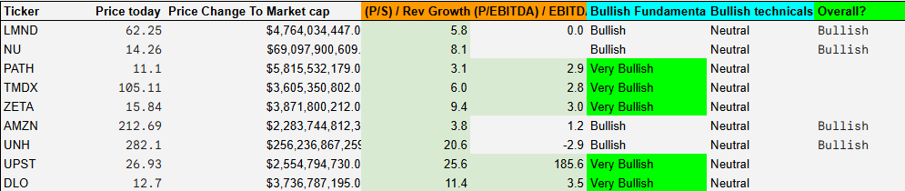 A way to see if the growth rates to multiple makes sense (“Bullish Fundamentals” column).