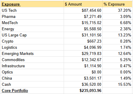 My exposure broken up into themes. Here’s a snippet of the portfolio tab to show how I’m currently weighted.