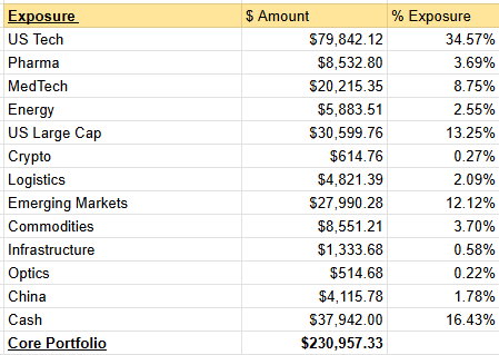 My core portfolio including exact dollar amounts.