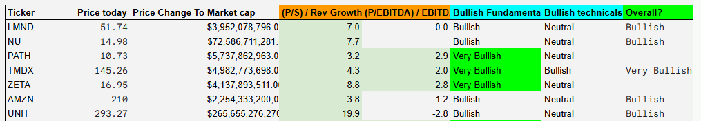 A way to see if the growth rates to multiple makes sense (“Bullish Fundamentals” column).