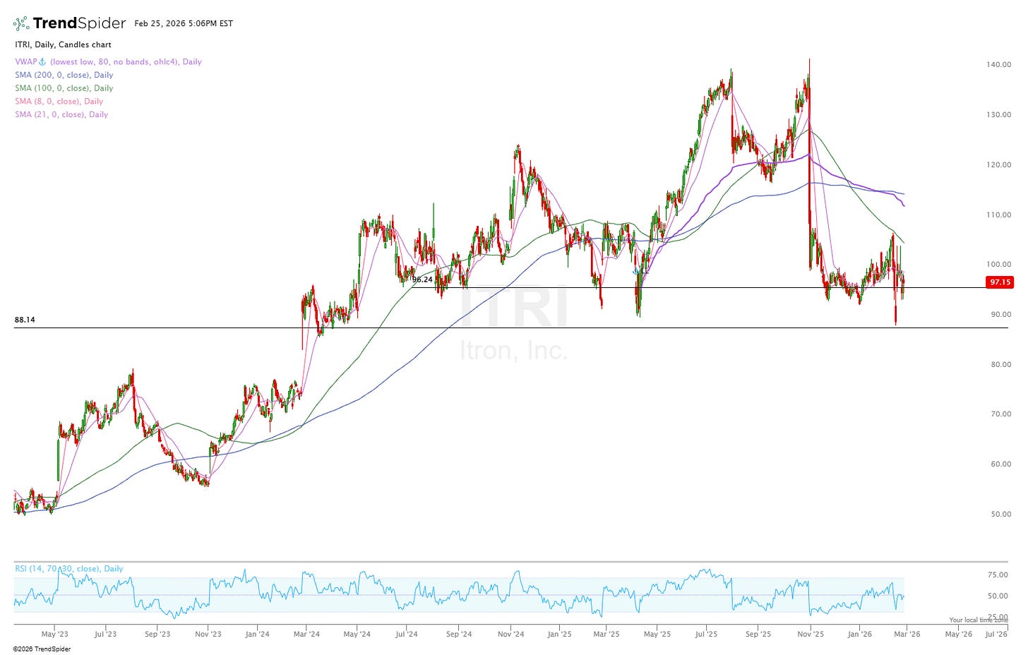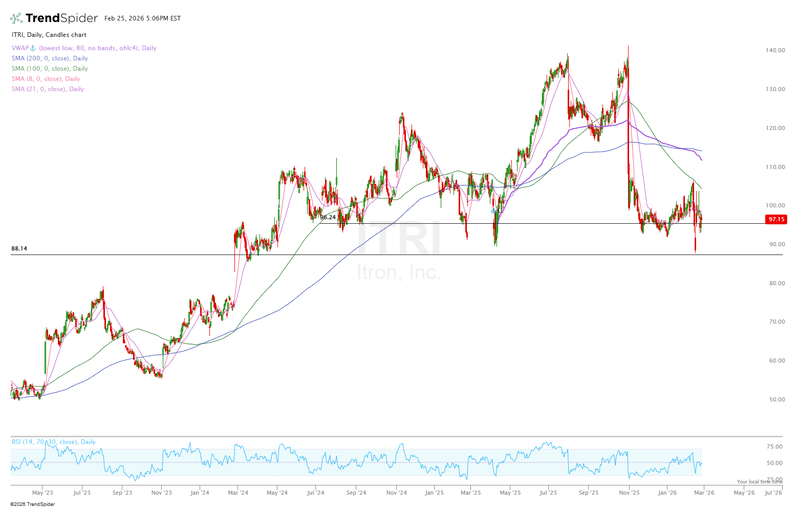 That’s why I decided to buy into ITRI today at $97.35 right at this key support level.