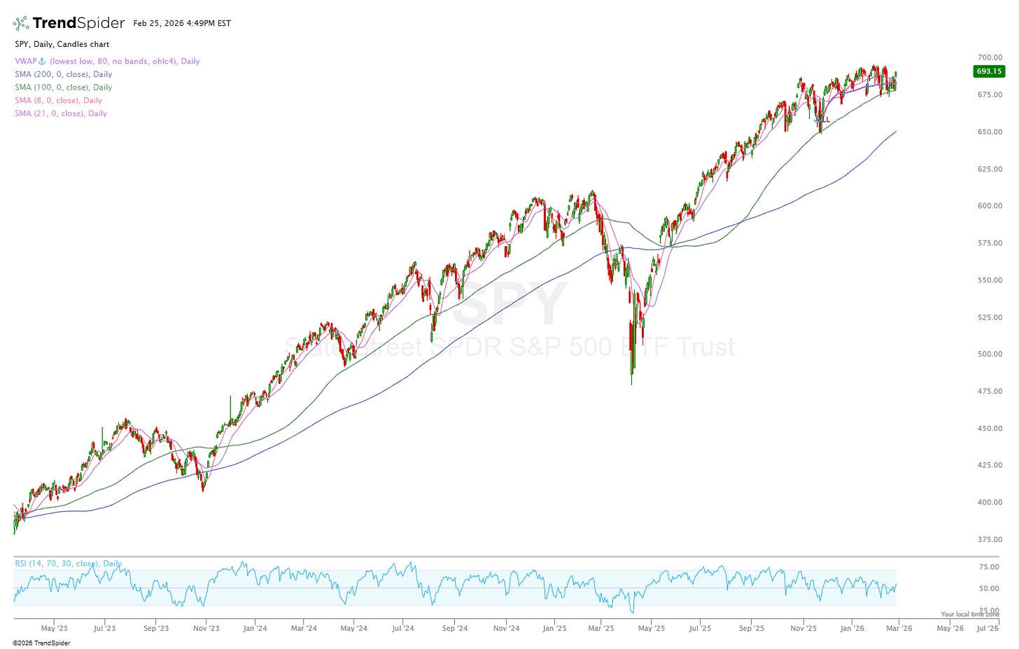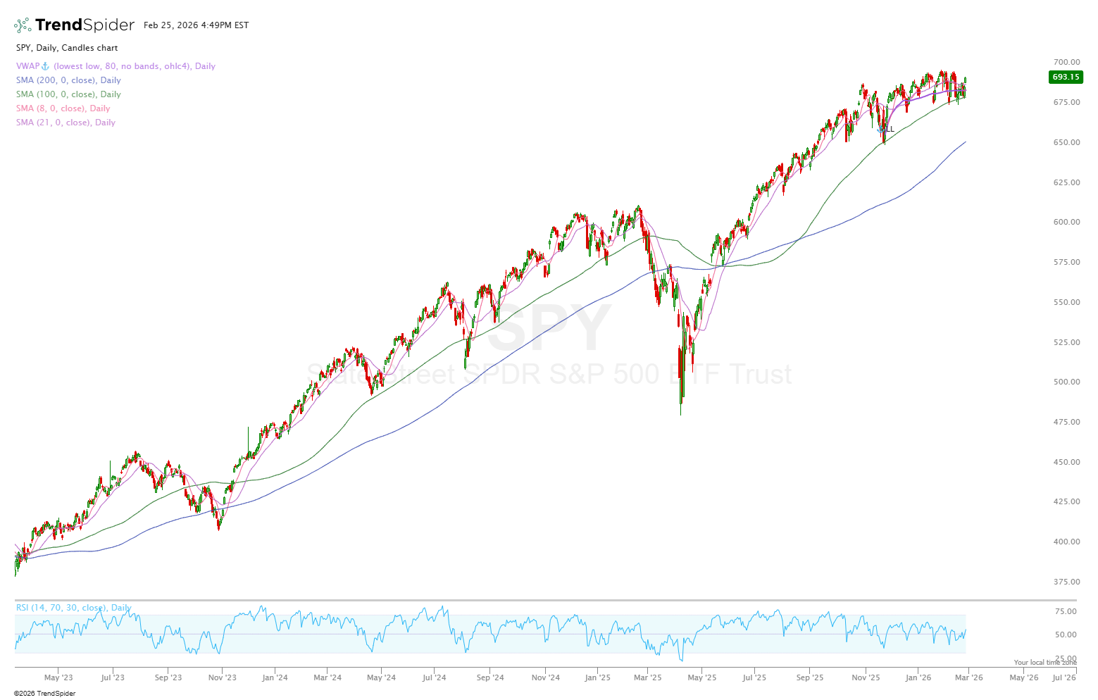 The SPY remains above key moving averages again but we still haven’t made a new high so structurally we aren’t out of the woods yet. On the QQQ, we closed above the 100 daily MA, and the 8 and 21 MA’s which is bullish. I made some small buys today into two new plays, and an add to one play.
