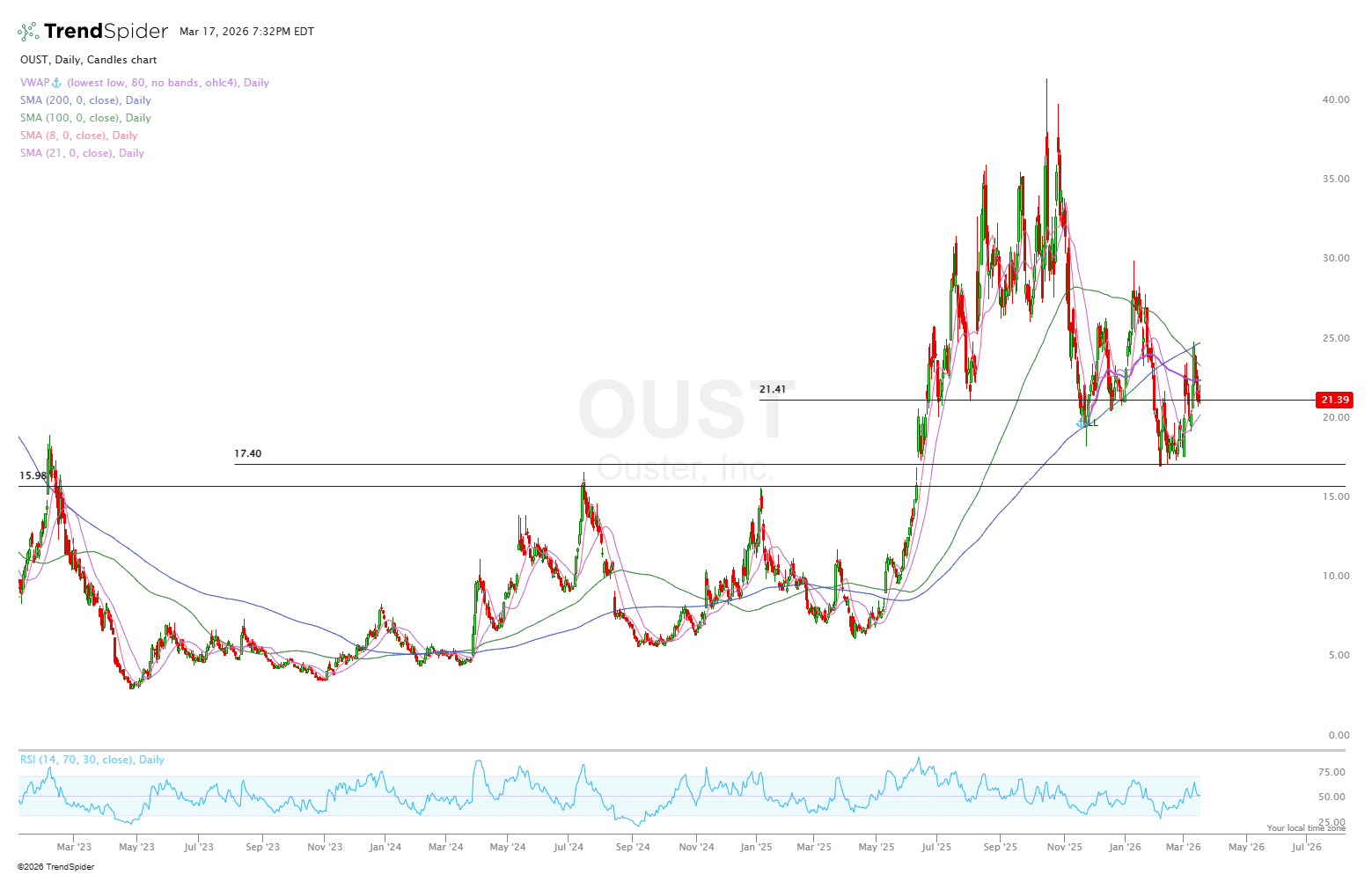 OUST is now sitting slightly below my initial $25 entry at $21. It’s now at a level where I feel extremely comfortable going bigger on the position.