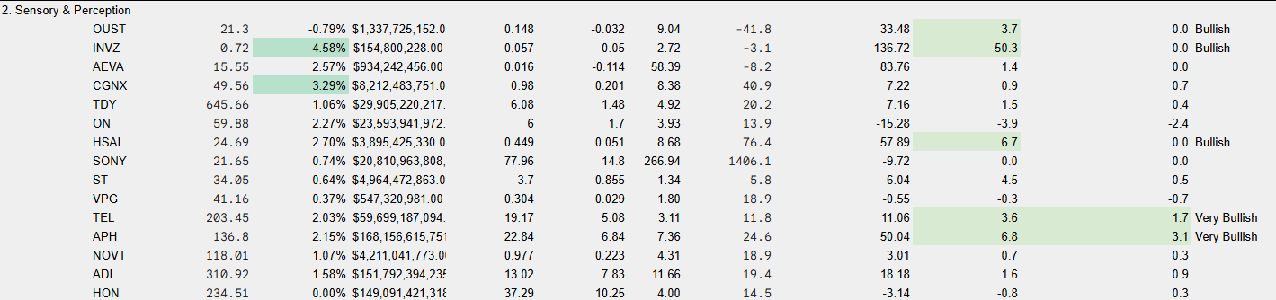 For example, in the sensory and perception niche, the best names are OUST, HSAI, TEL, and APH.