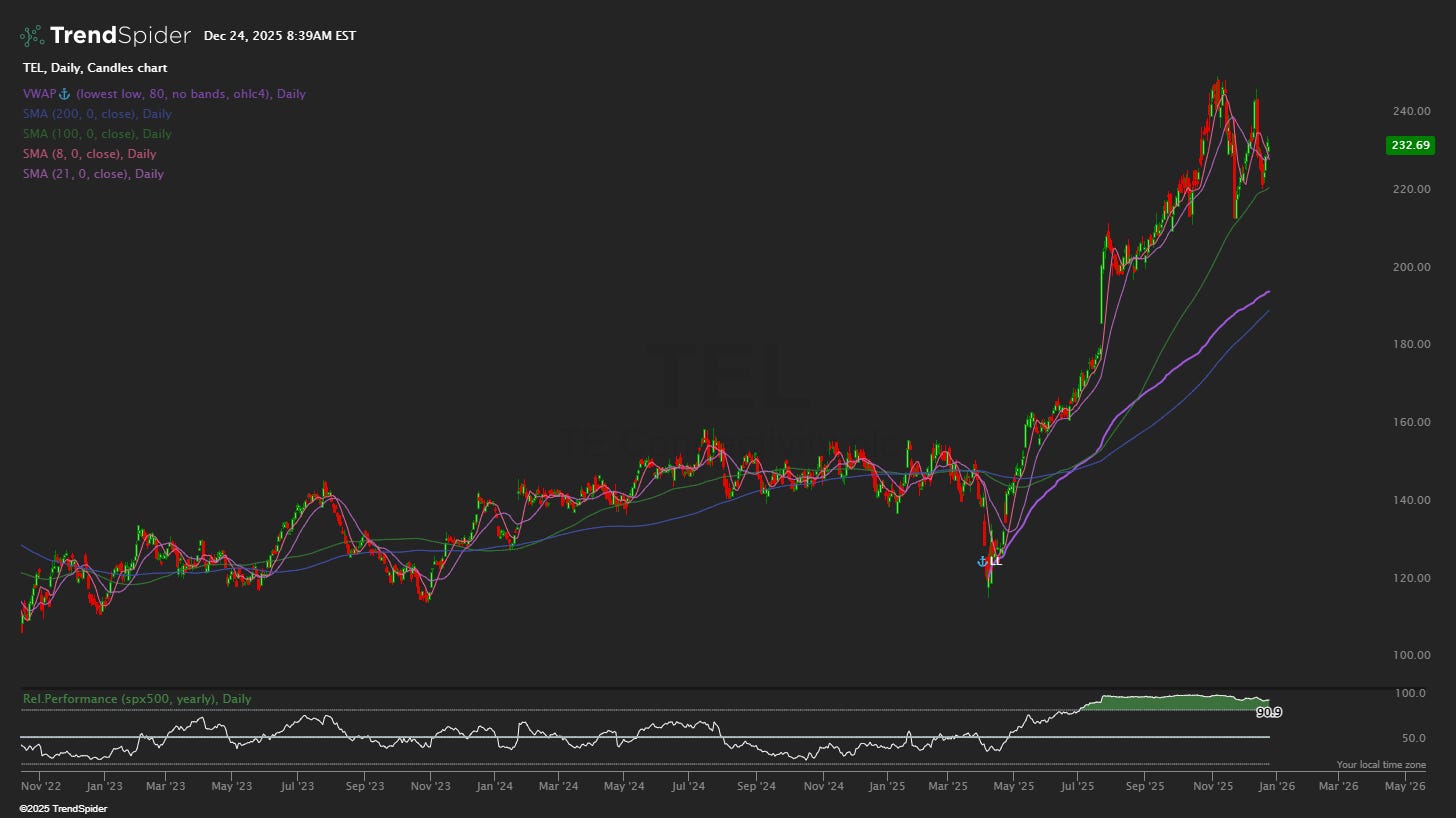 Description: TEL manufacture the connects, sensors, and cables that serve as the “nervous system” for robots. TE is a massive industrial conglomerate so their overall exposure to robotics as a % of total revenue is quite slim only around 10%.