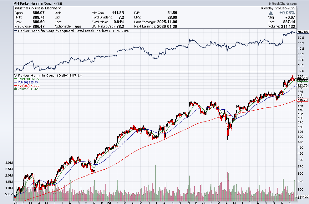 Description: PH dominate the electro-mechanical actuator market. These are explicitly focused on the robotics, factory automation, packaging, and material handling markets enabling smooth movement but under a lot of force. Whilst not exclusively robotics focused (like every stock in this list), actuators are a core part of their $20B revenue in motion and control technologies positioning themselves nicely in the automation trend.