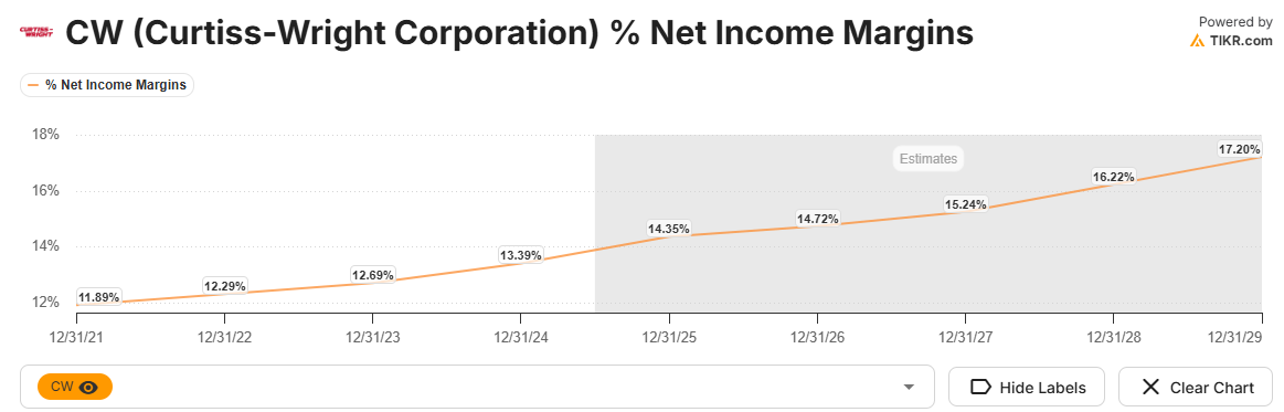 CW has one of the most stable financial profiles out of this segment of stocks. Here’s the net income margin trend over the last 4 years.