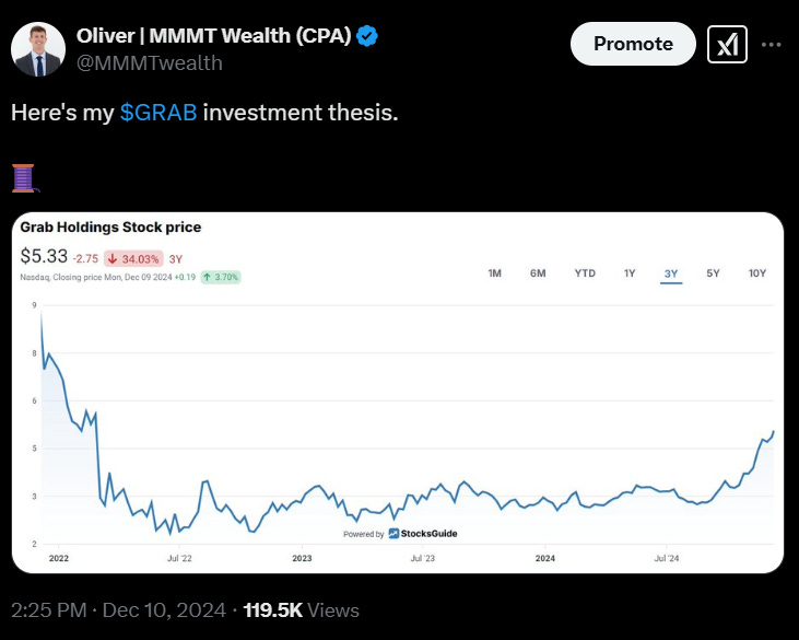 If you’re active on X, and specifically FinX, you’ve likely seen GRAB being discussed over the last few days which puts this deep dive at a good time. FWIW, I’m not jumping on the GRAB bandwagon and I first discussed GRAB back at the start of December 2024 with a brief investment thesis that you can see here: